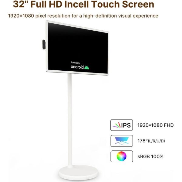 The Forgos portable TV is also cordless, freeing you from the need for power outlets and cables. With a removable charging dock and a built-in 108Wh lithium-ion battery that can last up to 6 hours, this smart touch screen truly is a mobile entertainment center. Five discrete wheels at the base make it easy to glide from room to room or even out on the patio.